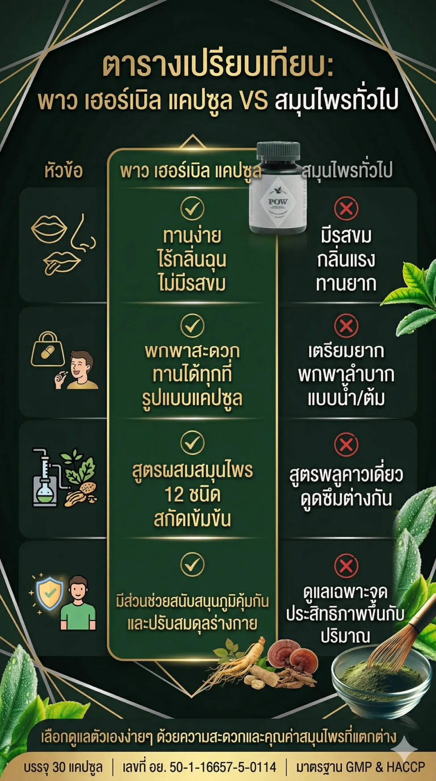 ภูมิคุ้มกันตก ป่วยง่าย อ่อนเพลียเรื้อรัง? ฟื้นฟูสุขภาพแบบตรงจุด ด้วย "พาว เฮอร์เบิล แคปซูล" พลูคาวสกัดเข้มข้น ทานง่าย ไร้กลิ่นฉุน!