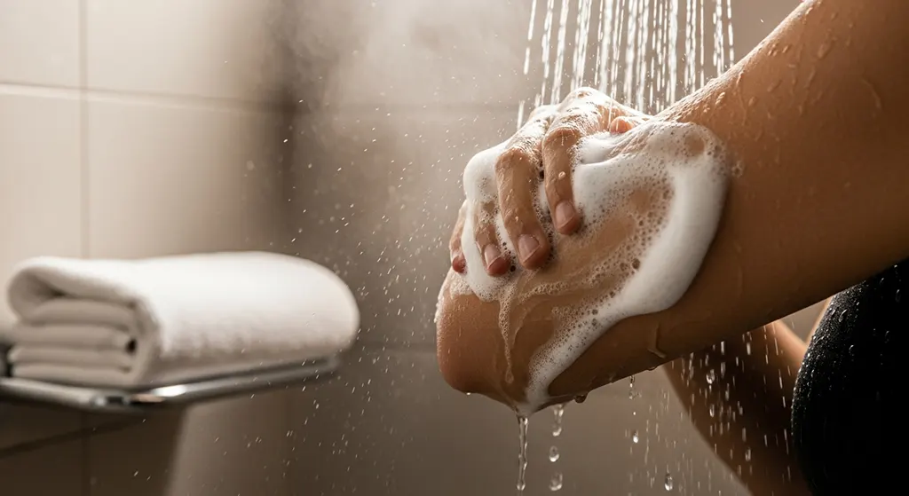 1. ทำความสะอาด: ล้างรักแขนด้วยสบู่อ่อนโยน เช็ดให้แห้งเพื่อลดความชื้นที่เป็นแหล่งเพาะเชื้อ​